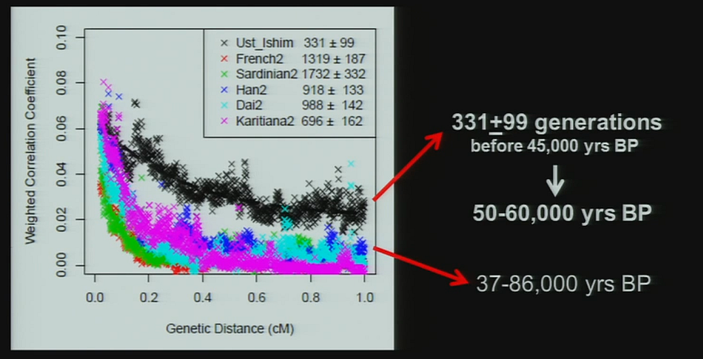 According to Dr. Paabo, Ust-Ishim has longer Neandertal chunks than modern humans and this can be used to estimate that the admixture with Neandertals happened 331+/-99 generations before its time of 45,000y BP, or around 50-60,000y BP.